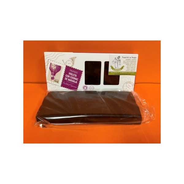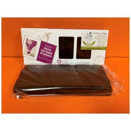 Ingredientes: Cobertura de chocolate con leche (50.85%) cobertura de chocolate negro (25.41%), nata (12.70%), Grand Marnier (6.35%), mantequilla (3.81%), lecitina de soja (0.63%) y esencia natural de violeta (0.25%).